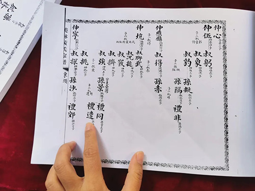 因此,美林文化研究会精心准备了一本印有“东头房侯旺派下”的小册子,上面单独印刷着黄海玲在东头角落这一派系的族谱信息。