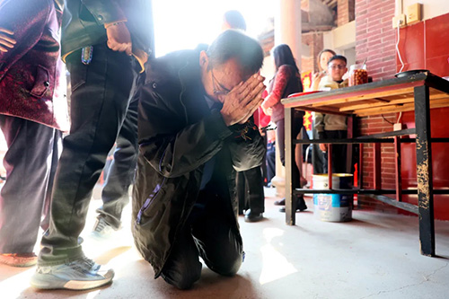 步入祖厝,老家亲人立刻将蔡贵荣团团围住,相互介绍、认识。蔡福进与蔡贵荣同辈且年长些,他站在桌上,庄重地请出蔡贵荣的祖宗牌位。“这是你太爷爷、这是你爷爷……”蔡福进介绍,祖厝翻修时,宗亲特意将蔡贵荣的祖宗牌位一同供奉。在亲人的协助下,蔡贵荣虔诚上香,拜谒祖先。此时,屋外鞭炮与烟花齐鸣,家乡亲人以最热烈的方式欢迎海外亲人的归来。